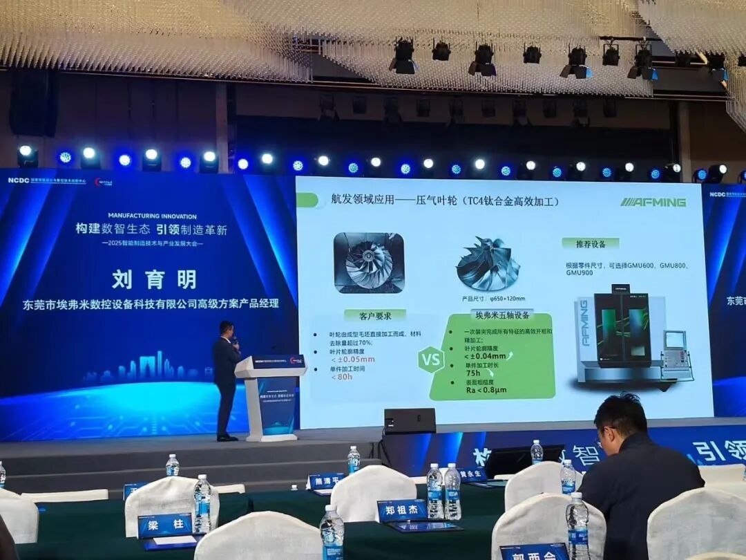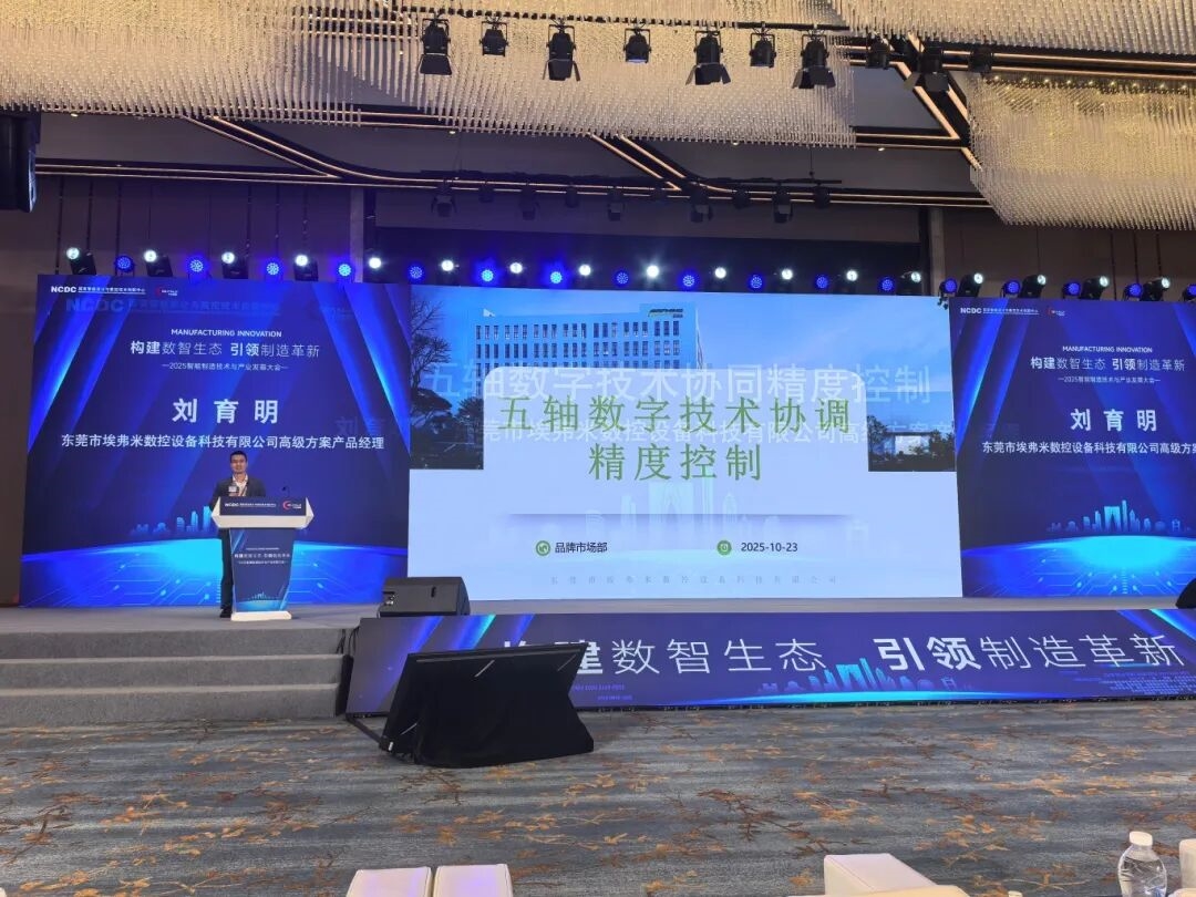 2025年10月23日,“构建数智生态 • 引领制造革新——2025智能制造技术与产业发展大会”在苏州隆重举行。埃弗米总经理黄永生应邀出席了本次大会,凭借在五轴技术与装备领域的积淀,埃弗米在本次盛会上向与会来宾分享交流了五轴机床应用综合解决方案。